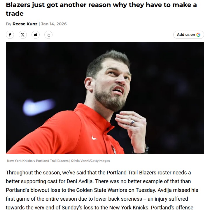Brian Gaines+FollowBlazers’ tough loss shows it’s time for a tradeWatching the Blazers fall apart without Deni Avdija on the court really highlights just how much this team leans on him. With Avdija out, Portland’s offense looked lost, piling up more turnovers than assists and struggling from three-point range. Even though the Blazers have been hanging around the playoff race, this game made it clear: if they want to get serious about winning, they need more help for their star. With the trade deadline coming up, what kind of moves do you think the Blazers should make to build a stronger, more balanced roster? #Sports #Basketball #RipCity00Share
