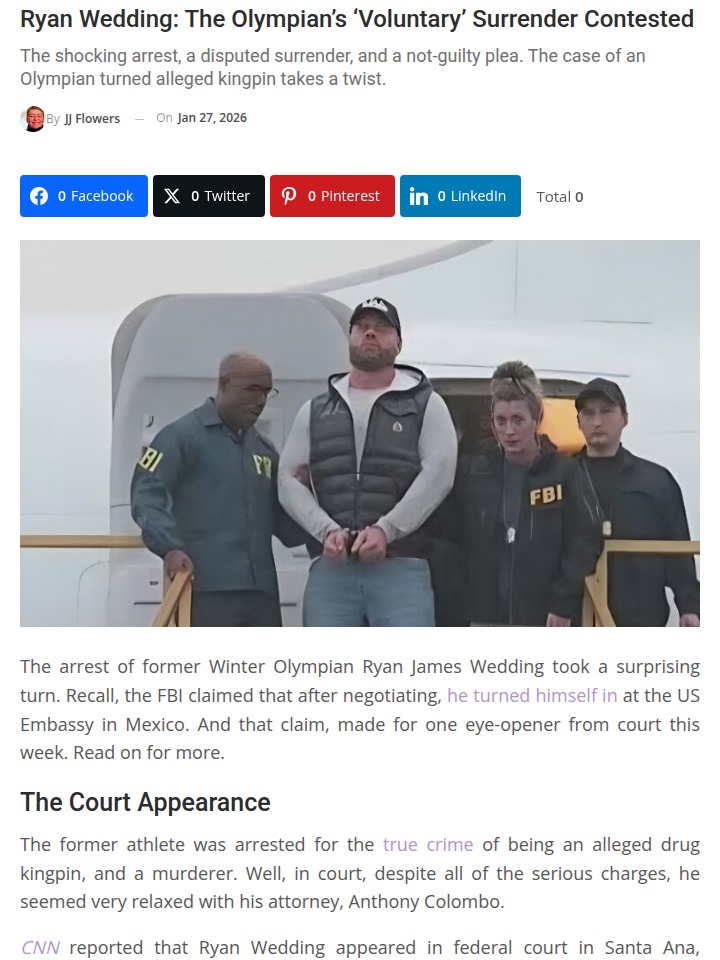 Dawn Fritz+FollowRyan Wedding’s Surrender: FBI vs. ColomboThe Ryan Wedding saga just got wilder. The FBI says the former Olympian turned himself in at the US Embassy in Mexico, but his attorney, Colombo, claims it was a straight-up arrest, not a voluntary surrender. With King James-level drama and a billion-dollar crime ring in play, this courtroom rivalry is heating up fast. Do you buy the FBI’s story, or is Colombo onto something? Sound off below! #Sports #RyanWedding #TrueCrime00Share