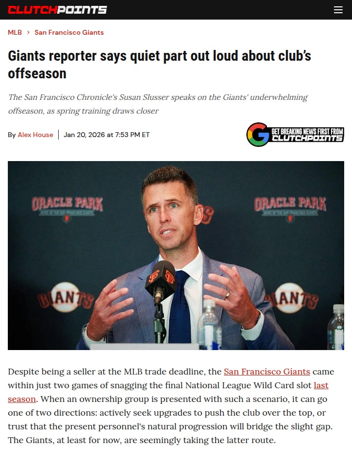 Cassandra Reed+FollowGiants’ quiet offseason has fans buzzingSan Francisco Giants fans are feeling the tension as the team takes a surprisingly cautious approach this offseason. Despite missing the playoffs by just two games last year, the front office, now led by Buster Posey, hasn’t made any splashy moves—just a couple of solid but unspectacular pitching additions. Meanwhile, the Dodgers are loading up, and Giants supporters are left wondering if patience will pay off or if this conservative strategy will backfire. Are you confident in Posey’s vision, or do you think the Giants need to make a bold move to keep up in the NL West? #Sports #Baseball #SFGiants00Share