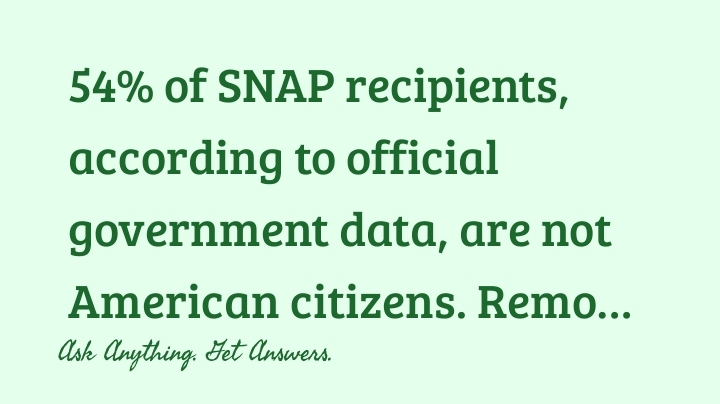 McGillicuddy Frank+Follow54% of SNAP recipients, according to official government data, are not American citizens. Remove them NOW, and save SNAP for Americans in need, and add a work requirement for able-bodied people. #SNAPBenefits #SNAPLife #SNAPTalk20Share