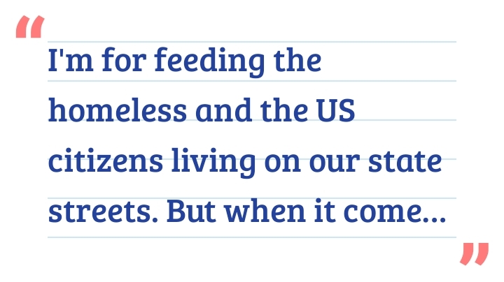 I'm for feeding the homeless and the US citizens living on our state streets. But when it comes to snap, no I'm not for feeding illegal entries. If truth was actually told more illegals especially from Mexico are supported more then our own citizens. Go to a grocery store and you'll see all the illegals with their snap card and they're buying junk food and loading up $200 worth of crap. I worked 40 years was retired physically unable to continue employment through the Army and when I finally applied last year, I was given $30 a month. Why am I not entitled as the illegals are? I have my little $12 purchases at a Walmart and the lady behind me has a car full of junk food oh sure how she could afford it as she was a Mexican? She informs me, she gets over $200 a month in benefits. and reiterate she has a child she has to feed. And then don't stop me there go to the food banks and they're being literally raped empty by illegals. there will actually push people off to grab an item items and I've seen them walk out with three four carts there is a limit but not to your illegals. The laws have to change on how your distributing the cards, and it should be to legal American citizens. Protect our own and do a lot more investigation of who you do give the snap cards to. I have no prejudice against people, race, color, sex, age etc, but I'm against the way our government takes care of we United States citizens. Remember "we can't pour from an empty cup".. We can't help others if we deplete our cup take care of America first.. Thank you for your time and listening, but take action as well. Save America My respect Debby.. #SNAPBenefits #SNAPLife #SNAPTalk