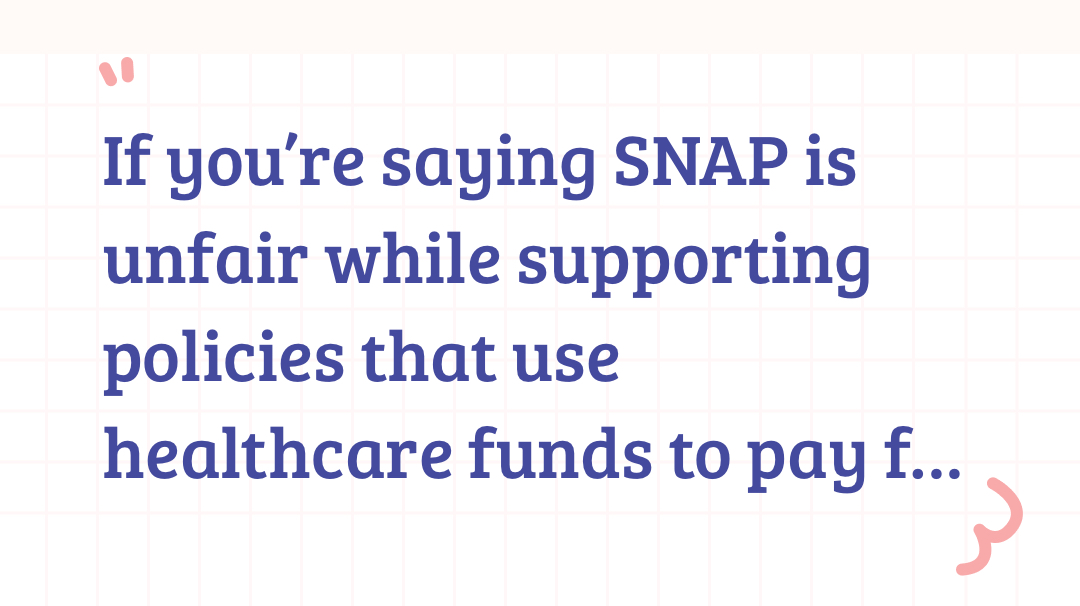 Andre J Grogan+FollowIf you’re saying SNAP is unfair while supporting policies that use healthcare funds to pay for billionaire tax breaks, you’re the one who’s unfair. If you want people to starve because rich people say they’re bad, you’re not just contributing to the problem - you ARE the problem. #SNAPBenefits #SNAPLife #SNAPTalk21Share
