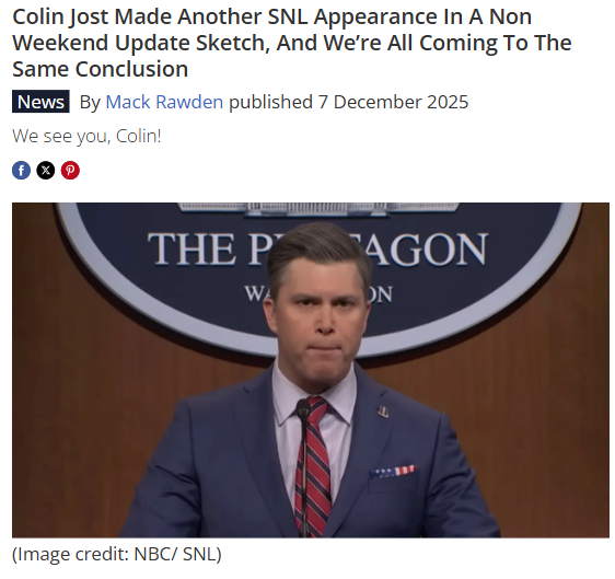 Savannah Smith+FollowColin Jost’s SNL Sketches: New Era? 🤔Colin Jost just crushed another SNL cold open as Pete Hegseth, and fans are buzzing that he’s way too good to be stuck behind the Weekend Update desk. The twist? People are now debating if he should be in more sketches or if it’s a sign he’s prepping for a big exit. Is SNL finally letting Jost show his full range, or is this a farewell tour in disguise? #Entertainment #ColinJost #SNL72Share