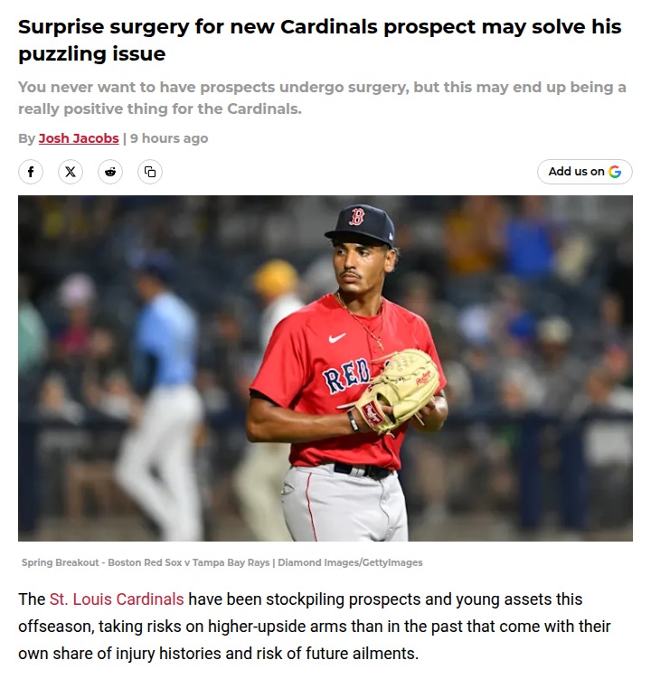Kimberly Moore+FollowCardinals prospect’s surgery could change everythingBrandon Clarke, the Cardinals’ top lefty pitching prospect, just had a surprising surgery that might finally solve his nagging arm issues. After dealing with numbness and blisters that kept him off the mound, the Cards’ medical team discovered an aneurysm in his left arm—something that could’ve derailed his career. Now, after a procedure through his armpit, Clarke’s already feeling relief and starting rehab. This could be a turning point for both Clarke and the Cardinals’ future rotation. What do you think—should the team keep betting on high-upside arms with injury histories? #Sports #Baseball #STLCards00Share