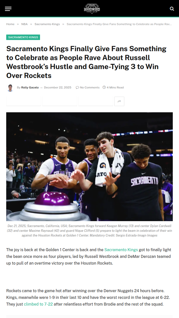 summersivan+FollowKings fans light up after Westbrook’s clutch shotSacramento finally got its groove back at Golden 1 Center! After a rough stretch, the Kings pulled off a thrilling overtime win against the Rockets, thanks to Russell Westbrook’s fearless game-tying three and Dennis Schroder’s ice-cold winner. The energy in the arena was electric—fans were on their feet, celebrating like it was playoff season. Westbrook’s hustle and never-quit attitude had everyone talking, reminding us why he’s still one of the most exciting players to watch. How do you feel about the Kings’ comeback? Can this spark a turnaround for the season? #Sports #Basketball #SacramentoKings10Share