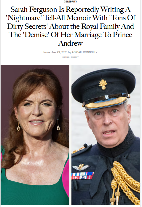 joannerodriguez+FollowSarah Ferguson's Memoir: Royal Family Nightmare? 👑Sarah Ferguson is reportedly working on a tell-all memoir that could send shockwaves through the royal family. Insiders claim she’s ready to spill on her marriage’s collapse and expose secrets about Prince Andrew and other royals. The book is rumored to be a 'nightmare' for the family, especially with Andrew’s scandals still making headlines. Will Fergie really reveal everything, or will Andrew retaliate? Royal watchers are divided! #Entertainment #Books #SarahFerguson61Share