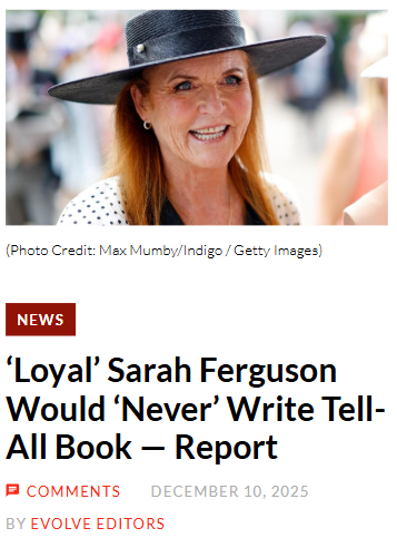 Darren Miller+FollowSarah Ferguson's Memoir Rumors Shut Down 👀Royal watchers are buzzing after reports that Sarah Ferguson, Duchess of York, was never planning a bombshell tell-all, despite being asked to leave the Royal Lodge. Insiders insist she’s too loyal to King Charles to spill royal secrets, even though some claim she was offered a huge payday. The debate: Is Fergie really that loyal, or is she just playing it safe for her daughters’ sake? #Entertainment #Books #SarahFerguson00Share