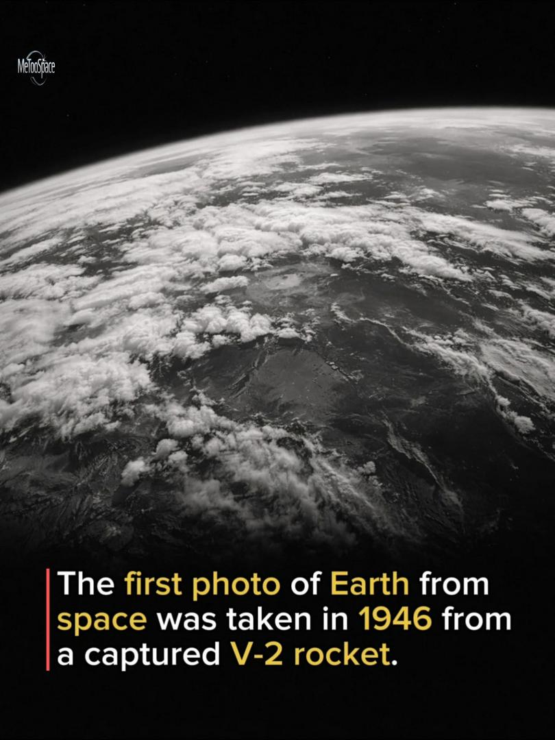 First Photo of Earth From Space (1946) The first photograph of Earth from space was taken on October 24, 1946, using a captured German V-2 rocket launched by the United States from White Sands Missile Range in New Mexico. After World War II, American scientists used these rockets for research. They attached a small 35mm motion picture camera to the rocket, which automatically took pictures as it rose to an altitude of about 105 kilometers (65 miles) above Earth. From that height, the camera captured a stunning black-and-white image showing the curve of our planet against the darkness of space. This was the first time humans had ever seen Earth from beyond the atmosphere. Although the rocket later crashed back to the ground, the film survived inside a protective steel container. This historic moment marked the beginning of space photography and opened the door to future missions, satellites, and eventually astronauts traveling into space. It was a small step toward the space age but a giant leap in how humanity viewed its home planet. #space #science #fact #facts
