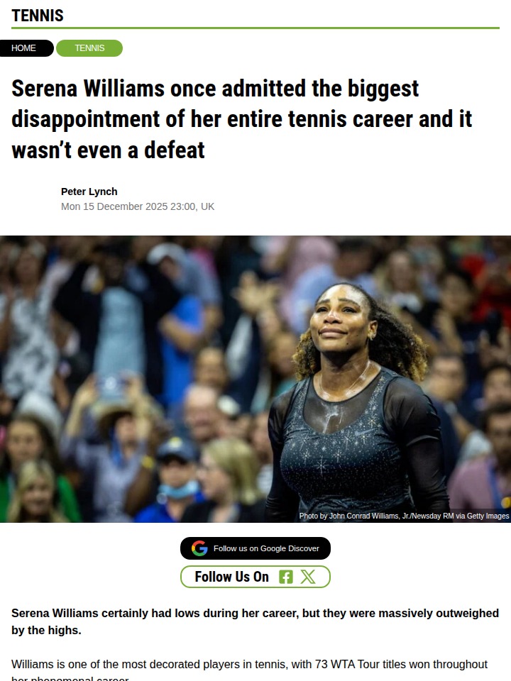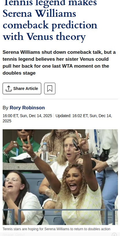 Reginald Gonzalez+FollowCould Serena Make a GOAT Comeback in 2026?Serena’s ex-coach, Patrick Mouratoglou, just stirred the pot by saying he’d love to see the Queen of Tennis back on tour in 2026. With Serena’s name popping up on the ITIA testing list and her recent workout videos, fans are buzzing. Is she teasing a return, or just keeping us guessing? Either way, the idea of Serena taking on the new WTA champs is too good not to dream about! #Sports #Tennis #SerenaWilliams00Share