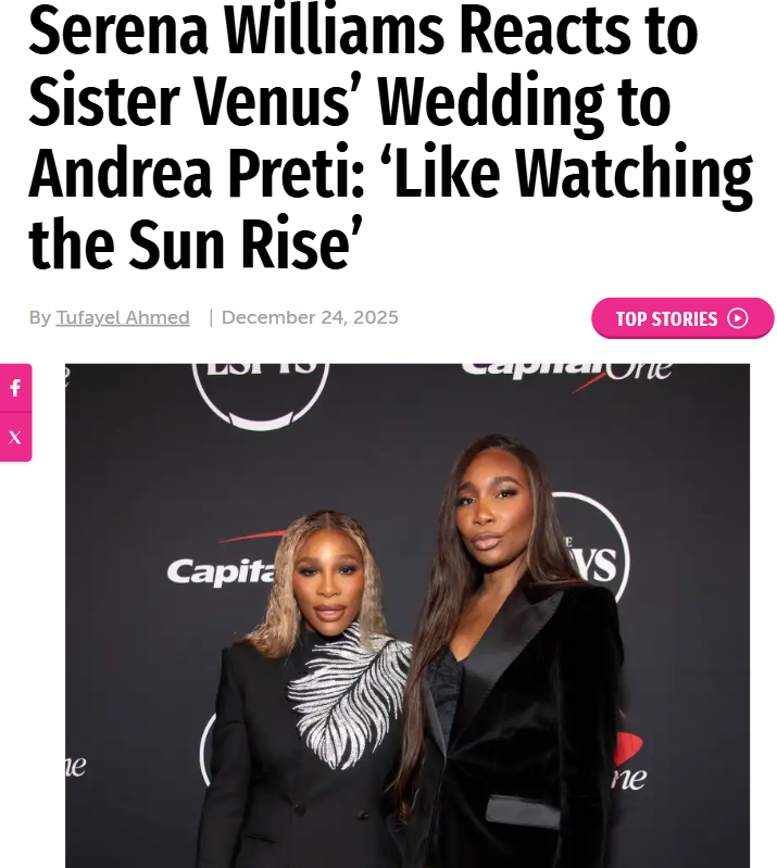 jharvey+FollowVenus Williams’ Wedding: A New Rivalry?Wow, Vee just tied the knot with Andrea Preti in a stunning Palm Beach ceremony, and King Serena’s tribute was pure gold. From backyard battles to Grand Slam glory, these sisters have always been each other’s fiercest rivals and biggest supporters. Now, with Venus stepping into a new chapter, will we see a shift in the legendary Williams rivalry? Or is this just another win for Team Sisterhood? #Sports #VenusWilliams #SerenaWilliams20Share
