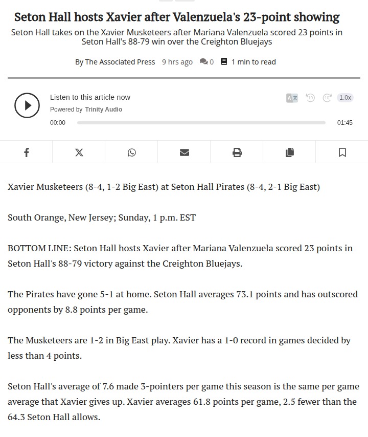 Patrick Gonzales+FollowSeton Hall’s home court heat: Can Xavier cool them down?Seton Hall’s home crowd has been electric this season, and after Mariana Valenzuela’s explosive 23-point game, the Pirates are looking to keep their momentum rolling against Xavier this Sunday. Both teams have matching 8-4 records, but Seton Hall’s strong defense and sharp shooting from Savannah Catalon have made them tough to beat at home. Xavier, meanwhile, has shown they can handle close games. With both squads coming off solid stretches, this matchup could shake up the Big East standings. Who do you think will step up and make the difference? #Sports #Basketball #SetonHall00Share