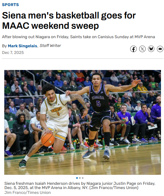 Theresa Boyd+FollowSiena hoops aims for rare MAAC sweep at homeSiena basketball fans, this weekend could mark a turning point. After years of splitting MAAC doubleheaders, the Saints are finally in position to pull off a weekend sweep—something they missed last season after a big win over Niagara. With Canisius coming to MVP Arena, the team’s focus is sharper than ever, especially for players who remember last year’s upset loss. Freshman Isaiah Henderson’s breakout game has boosted team confidence, and the Saints’ improved 3-point shooting could be the difference. Can Siena finally shake off the split curse? Let’s hear your predictions! #Sports #Basketball #SienaSaints00Share