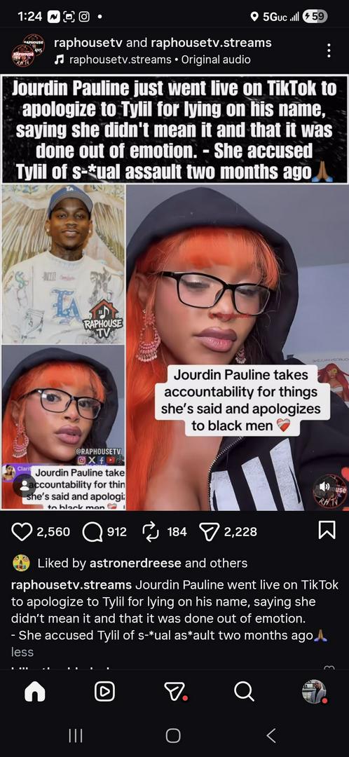 Jourdin Pauline went live on TikTok and publicly took accountability for past statements she made, offering an apology to Black men and specifically addressing comments involving Tylil. During the live, Jourdin said she acted out of emotion, admitting that things she said went too far and that she did not mean the harm caused. She also apologized for lying on his name, saying she regrets how the situation unfolded. Two months ago, she had accused Tylil of sexual assault — an allegation that sparked widespread conversation online. Her apology has now reopened that discussion, with many people debating accountability, responsibility, and the real-world impact of accusations made on social media. Some are applauding her for owning her mistakes. Others are questioning the damage already done. What’s undeniable is this: words carry weight, especially online. Accusations can change lives forever — even after apologies are made. This situation is a reminder that truth, accountability, and restraint matter just as much as speaking up. #JourdinPauline #TikTokLive #Accountability #BlackMen #SocialMediaNews #ViralMoment #PublicApology #OnlineAccountability #RealConversations #HardDiscussions #TruthMatters #TrendingNow #NewsBreak