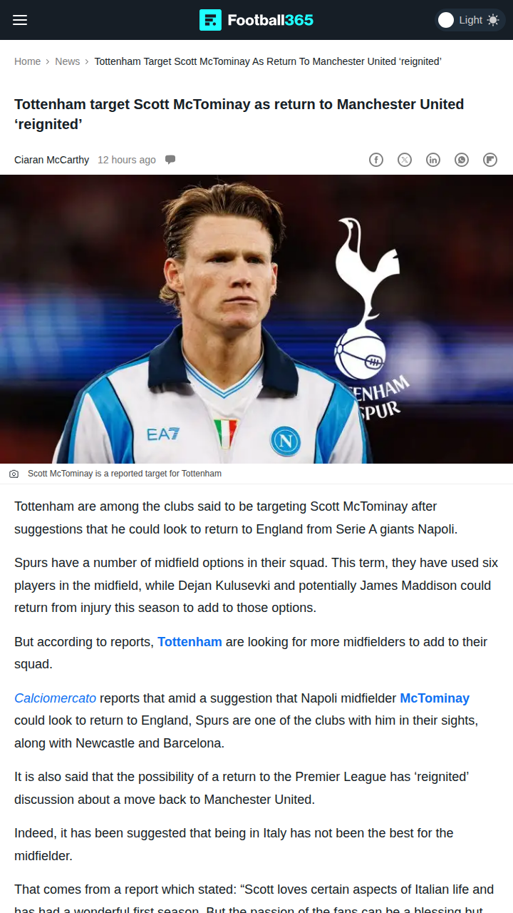Maurice Miller+FollowSpurs Eye McSauce Amid United Return RumorsLooks like Spurs are keeping tabs on McSauce (Scott McTominay) as talk heats up about his possible return to the Premier League. While Tottenham’s midfield is stacked, the idea of poaching McTominay from Napoli has fans buzzing, especially with whispers of a Manchester United reunion. Some say the Serie A lifestyle isn’t all it’s cracked up to be for him, but McTominay himself seems to love the Napoli passion. Would you take him at Spurs, or is this just transfer window smoke? #Sports #Soccer #Spurs00Share