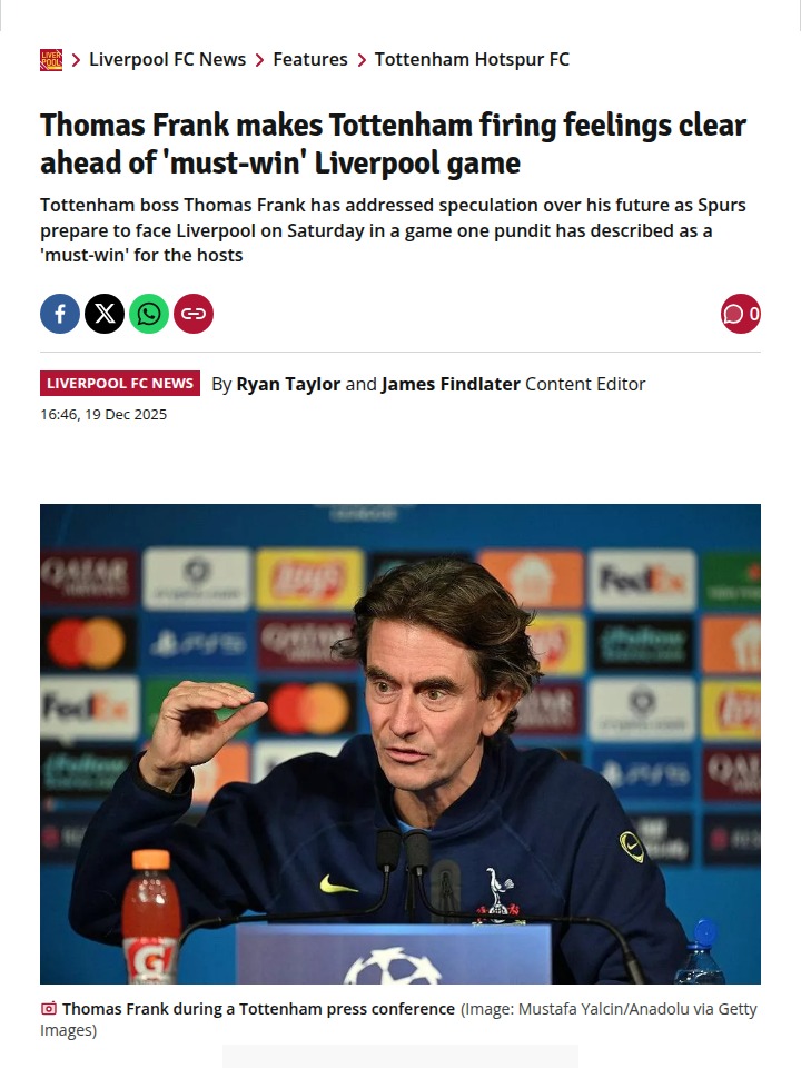 Timothy Thompson+FollowFrank Faces Must-Win vs LiverpoolBig test for Spurs this weekend as Thomas Frank, under fire after a rough start, insists he’s still got the board’s backing ahead of a must-win clash with Liverpool. With King Salah’s Reds finding form, all eyes are on whether Frank can inspire the Lilywhites to turn things around. Jenas says it’s do-or-die—do you think Frank survives if Spurs fall short? #Sports #Soccer #Spurs00Share