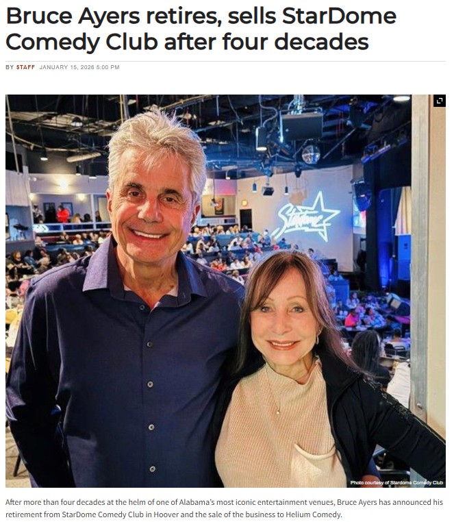 april67+FollowStarDome’s next act: New owners, same laughs?Bruce Ayers is stepping away after 42 years of bringing big laughs to Hoover, handing the StarDome Comedy Club over to Helium Comedy. For so many in Birmingham, StarDome has been more than a club—it’s been a family tradition, a place where comedy legends like Steve Harvey and Sinbad felt at home. Now, with new owners, everyone’s wondering: will the heart and soul of StarDome stay the same? What’s your favorite StarDome memory, and what do you hope the future holds for this local icon? Let’s talk about what this place has meant to you! #Entertainment #StarDome #Birmingham00Share