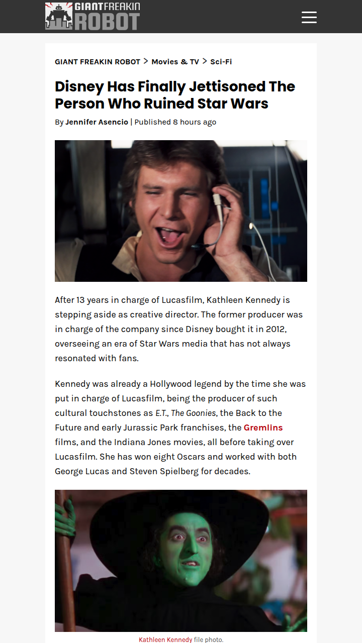 michaellowe+FollowKathleen Kennedy OUT at Lucasfilm! 🚀Kathleen Kennedy is officially stepping down as Lucasfilm’s creative head after years of controversy. Fans are split—some blame her for the divisive direction of Star Wars, while others point to her legendary Hollywood track record. The big twist? Dave Filoni, George Lucas’s protégé, is taking over. Will Filoni finally unite the fandom, or is Star Wars doomed to repeat history? The debate is hotter than ever! #Entertainment #Movies #StarWars00Share
