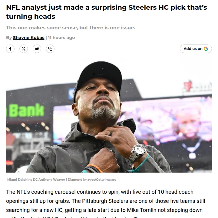 Jay Williams+FollowSteelers’ head coach search heats upESPN’s Dan Orlovsky just threw his support behind Dolphins DC Anthony Weaver for the Steelers’ head coach job, calling him a leader who gets the most out of his players—even when the roster isn’t stacked. While Weaver’s Miami defense didn’t light up the stats, Orlovsky believes his leadership style could be just what Pittsburgh needs. With other big names still in the mix, the debate is on: Should the Steelers go for a proven play-caller or a “CEO” type who can rally the whole team? What kind of coach do you think Pittsburgh needs most right now? #Sports #Football #SteelersNation10Share