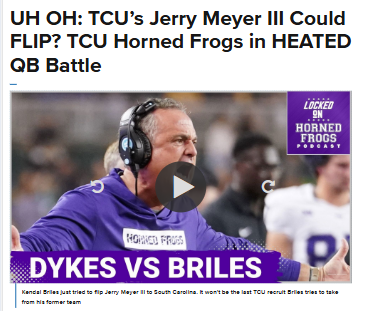 Christopher Hughes+FollowTCU’s QB drama: Jerry Meyer III in the spotlightTCU fans, things are heating up behind the scenes—South Carolina’s Kendal Briles is making a serious push to flip Jerry Meyer III, one of TCU’s top quarterback recruits. This move could shake up the Horned Frogs’ plans and signals a brewing battle for talent between these programs. With Briles’ TCU connections, expect more recruiting drama ahead. How do you feel about coaches trying to lure away recruits from their former teams? Is this just part of the game, or does it cross a line? Let’s hear your take! #Sports #Football #TCU00Share