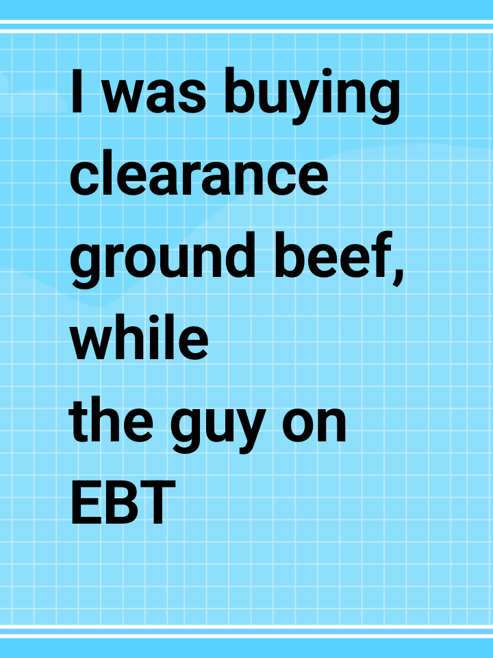 Willie Stephens+FollowI was buying clearance ground beef, while the guy on EBT ahead of me bought steak and lobster.I work 50 hours a week and scour the discount bin for expiring meat to save money. The guy in front of me, wearing brand new Jordans, threw two lobsters and filets on the belt. At checkout? He pulled out his EBT card. I'm the taxpayer funding his lobster dinner while my kids eat spaghetti tonight. Is this fair? #WelfareAbuse #EBT #Taxpayers #Inequality4069Share