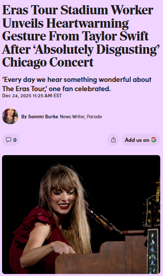 Jay Carter+FollowTaylor Swift’s small act made a big differenceTaylor Swift quietly made life a little easier for stadium workers during her Eras Tour, and fans can’t stop talking about it. When a Soldier Field employee mentioned how unbearable the heavy uniforms were in the summer heat, word got back to Swift. The next day, the staff received lighter, more breathable shirts—thanks to a request from Taylor herself. She didn’t know these workers personally, but she made sure they felt seen and appreciated. It’s moments like this that show how genuine kindness can have a ripple effect. What other small gestures have left a big impact on you? #Entertainment #Music #TaylorSwift331Share