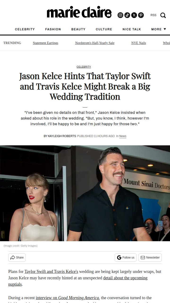 Gina Reynolds+FollowJason Kelce Drops Wedding Party Bombshell 💍Jason Kelce just threw major shade on the whole 'best man' tradition for Taylor Swift and Travis Kelce's wedding! In a recent interview, he hinted there might not even be a best man at all, which has fans debating if the couple will skip having a formal wedding party. Are Swift and Kelce about to totally break wedding norms? This twist has the fandom buzzing! #Entertainment #Celebrity #TaylorSwift597Share