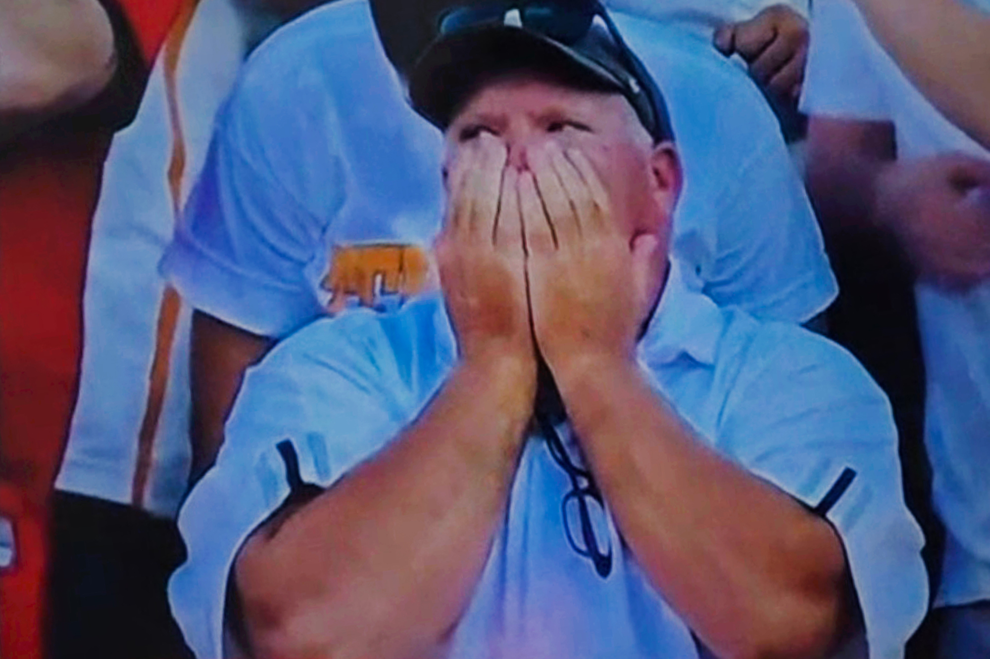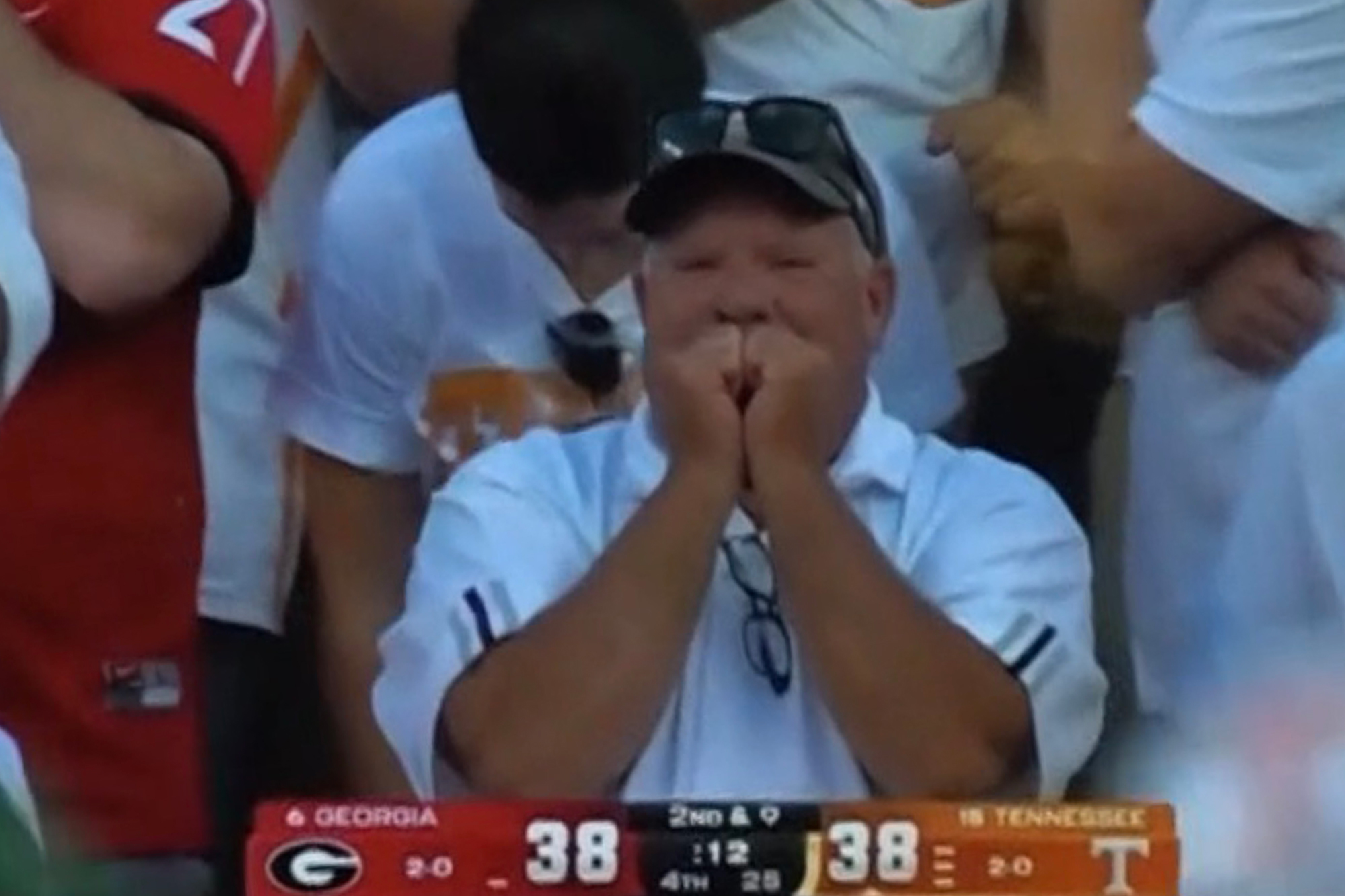 BlitzNova+FollowThis Vols fan's pain is way too relatableThis Vols fan's jumbotron meltdown perfectly captures what it's like watching Tennessee choke against the Dawgs AGAIN. Jeff's arms-crossed, soul-crushed expression in overtime said everything we were feeling - another heartbreaking loss to Georgia when it mattered most. The man called in sick to watch his team blow it, got immortalized on the big screen for his pain, and then got 'Coldplayed' by his boss when the video went viral. His defeated stare is the most Tennessee thing ever. Which moment from this game hurt your soul the most? #Sports #Football #TennesseeFootball484Share