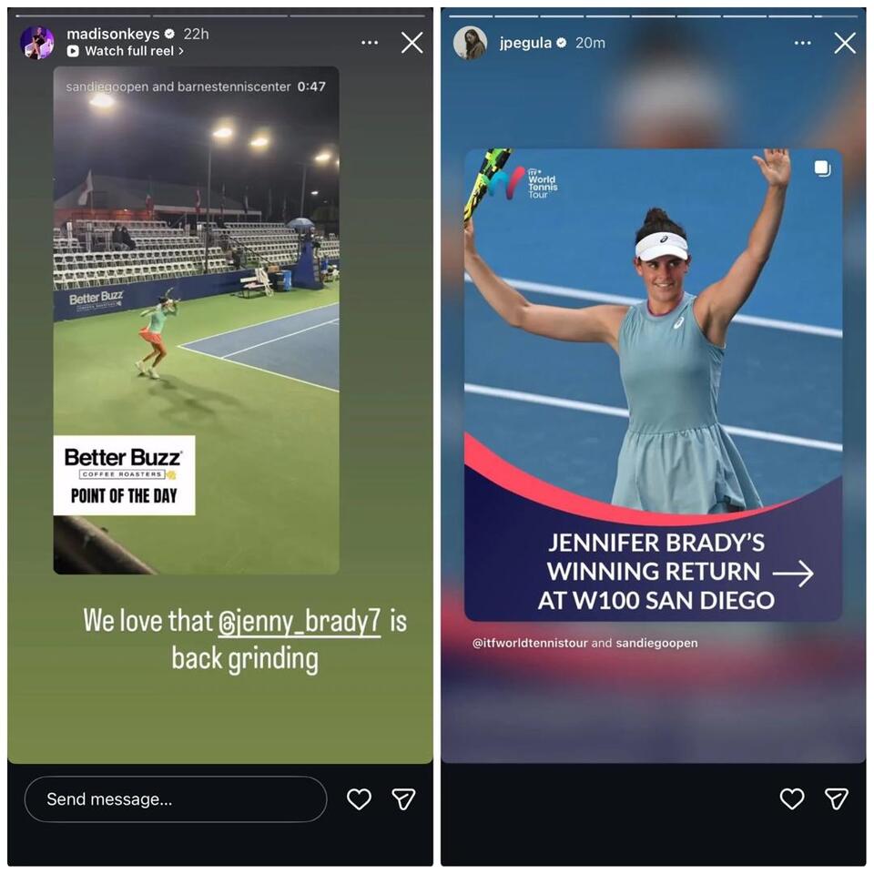 Nicholas Henderson+FollowPegula & Keys Rally for Brady’s ComebackHow awesome is it to see Jenny Brady back on court after nearly two years? The Player’s Box Podcast crew—Jessica “JPeg” Pegula and Madison Keys—were all over social, hyping up Brady’s gritty win over Jokić at the San Diego Open. After a tough knee surgery and a long road back, Brady’s return is a huge boost for American tennis. Anyone else think this comeback could spark a deep run? #Sports #Tennis #JessicaPegula00Share