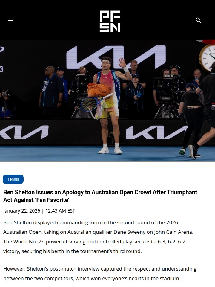 Danielle Strickland+FollowShelton’s Ace-Fest Stuns Aussie Open CrowdWow, Ben “Big Lefty” Shelton just served up a masterclass at the Australian Open, blasting 19 aces past local hero Dane Sweeny in straight sets! Even after dominating, Shelton showed real class, apologizing to the crowd for knocking out their fan favorite. Respect to Sweeny for his Monfils upset, but Shelton’s serve was untouchable tonight. Next up: Valentin Vacherot. Can Shelton keep this hot streak alive? #Sports #Tennis #AustralianOpen20Share