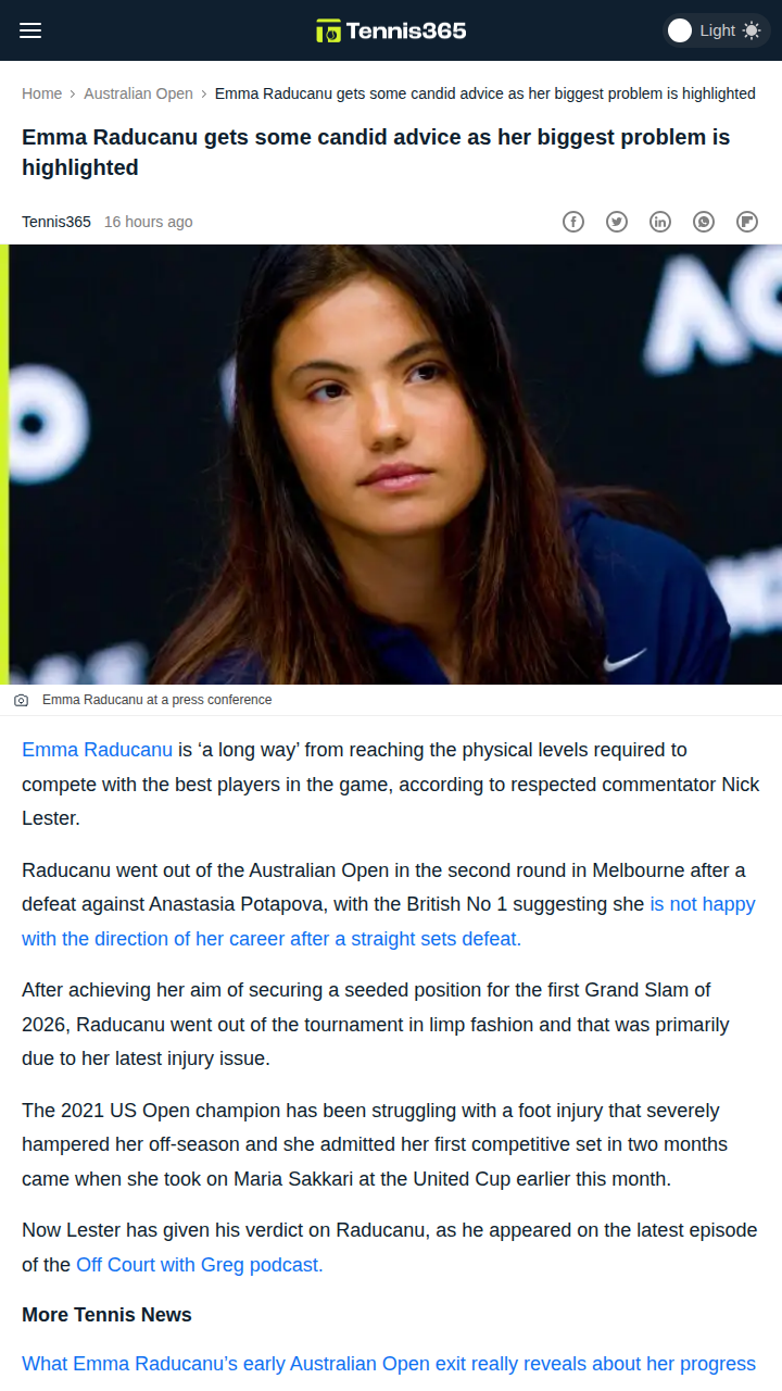 matthew58+FollowRaducanu’s Fitness Gap Exposed Down UnderTough break for the Queen of New York—Emma Raducanu’s early exit at the Aussie Open has fans and pundits talking. Nick Lester called out her biggest hurdle: she’s just not matching the physicality of top rivals like Swiatek and Gauff. With injuries still haunting her and talk swirling about another possible coaching change, is Raducanu’s camp headed for another shakeup? Can she close the gap and get back to her US Open form? #Sports #Tennis #Raducanu00Share