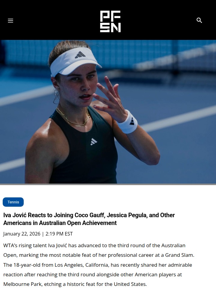 Kelly Jones+FollowJović Joins Gauff & Pegula in AO History!How about this American surge at the Aussie Open? Iva Jović, the LA teen with Serbian roots, just made the third round, joining heavy hitters like Coco Gauff and Jessie Pegula. That’s seven American women into R3—first time since 2015! Jović’s Insta reaction was pure pride. Next up, she faces Jasmine Paolini. Can she keep the run going? Loving this new wave of US talent! #Sports #Tennis #AustralianOpen10Share