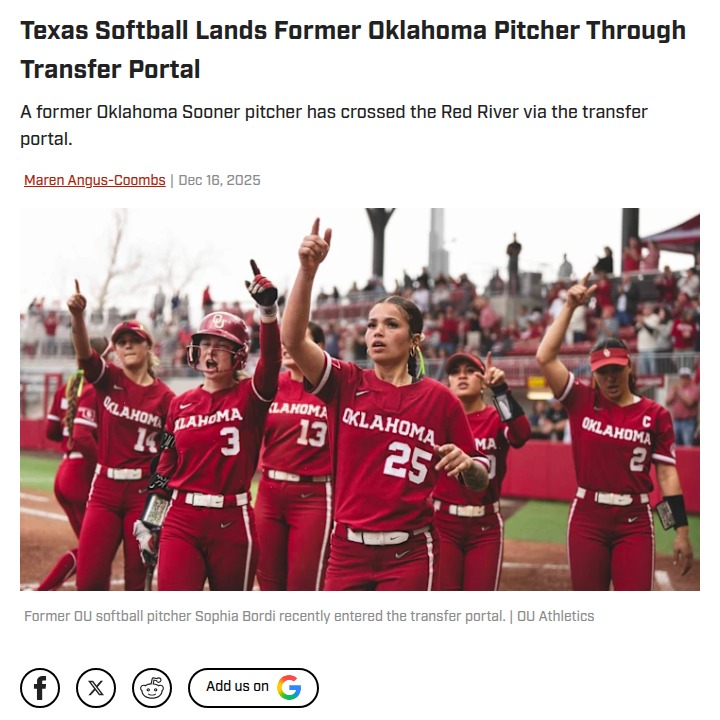 Bruce Johnson+FollowTexas Softball scores big with new aceSophia Bordi, once the nation’s top softball recruit, is bringing her arm to Texas after a tough year at Oklahoma. She didn’t pitch a single game for the Sooners, stepping away for mental health reasons, but her high school record is nothing short of electric—two state titles, three-time MVP, and a pile of awards. Bordi will have to sit out this spring, but when she’s eligible, she’ll join a stacked Texas pitching staff. What do you think—will this transfer shake up the Longhorns’ future? Let’s talk about how mental health and transfers are changing college sports. #Sports #TexasSoftball #NCAASoftball00Share