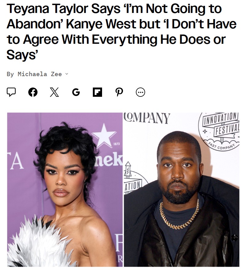 xpotter+FollowTeyana Taylor Defends Kanye—But Draws the Line 🧑🎤Teyana Taylor just reignited the Kanye West debate! In her Vanity Fair cover, she made it clear she won’t abandon Kanye, even after his wildest controversies, but she’s not afraid to call him out either. Fans are split—some say loyalty matters, others think she should cut ties. Does supporting a friend mean ignoring their scandals? This drama is heating up! #Entertainment #Celebrity #TeyanaTaylor01Share