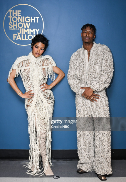 taylornoah+FollowTeyana Taylor’s See-Through Dress StunsTeyana Taylor just redefined red carpet daring on The Tonight Show! She rocked a totally see-through Maximilian Raynor dress made of thousands of pearls and beads—no fabric, just pure art. The look was so bold, she paired it with a nude bodysuit underneath. Add a matching beaded headpiece and fringe that swayed with every step, and you’ve got a major fashion moment. Who else could pull this off? #Beauty #TeyanaTaylor #FashionMoment300Share
