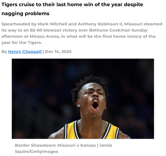EchoingEagle+FollowTigers dominate at Mizzou Arena, but questions remainMissouri fans got a big win to close out the home season, with the Tigers overpowering Bethune-Cookman 82-60 thanks to standout performances from Mark Mitchell and Anthony Robinson II. The team’s size advantage was clear, out-rebounding BCU 34-20, and Jacob Crews delivered a spark off the bench. Still, turnovers and perimeter defense continue to be issues—something to watch as the Tigers gear up for tougher matchups ahead. How confident are you in this squad as they head into the high-stakes Braggin’ Rights game against Illinois? #Sports #Mizzou #TigersBasketball00Share