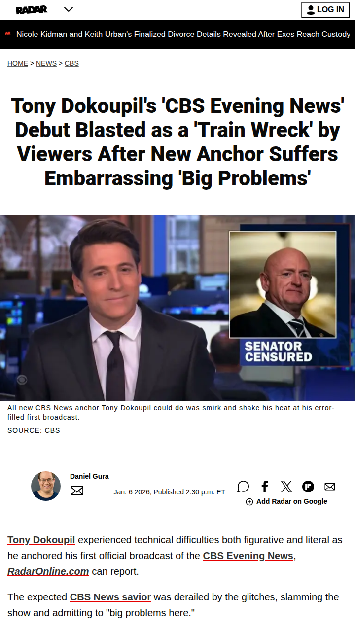 Heather Owens+FollowTony Dokoupil’s CBS Debut: Total Flop? 😬Tony Dokoupil’s first night as CBS Evening News anchor was a wild ride—he introduced himself twice, mixed up states, and got totally lost on live TV. Fans are split: was it just first-day jitters or a sign he’s not ready for primetime? Some say the pressure from Bari Weiss being in the newsroom made it worse. Is Dokoupil the right fit for evenings, or should CBS rethink this move? #Entertainment #TonyDokoupil #CBSEveningNews117Share