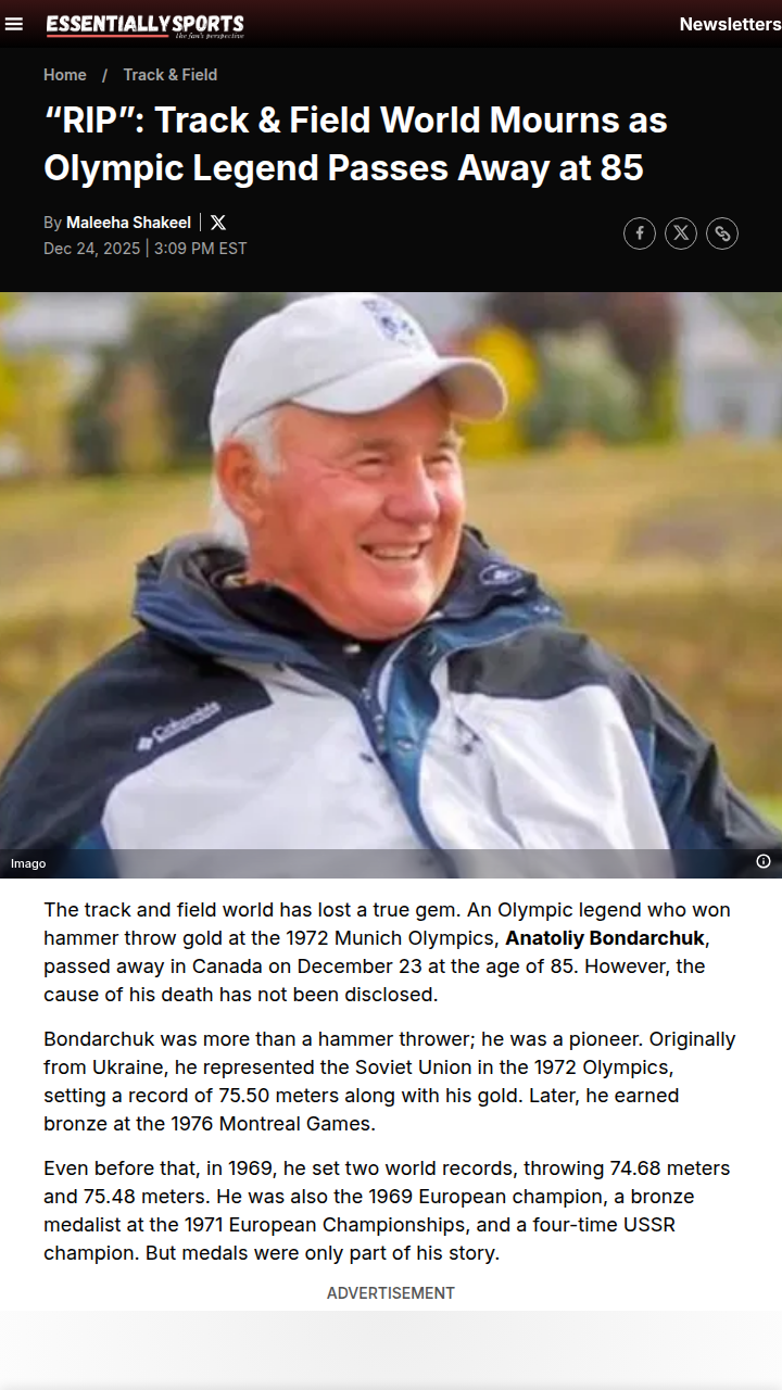 Aaron Gentry+FollowDr. B’s Hammer Throw Legacy Lives OnThe hammer throw community just lost its GOAT. Dr. B—Anatoliy Bondarchuk—wasn’t just an Olympic champ for the USSR, he was the mastermind behind the legendary Yuriy Sedykh’s world record (which still stands!). From Munich gold to revolutionizing training with the Bondarchuk method, his impact is everywhere. Whether you’re a thrower or a fan, you know Dr. B’s science-meets-strength approach changed the game forever. RIP to a true icon. #Sports #TrackAndField #HammerThrow20Share