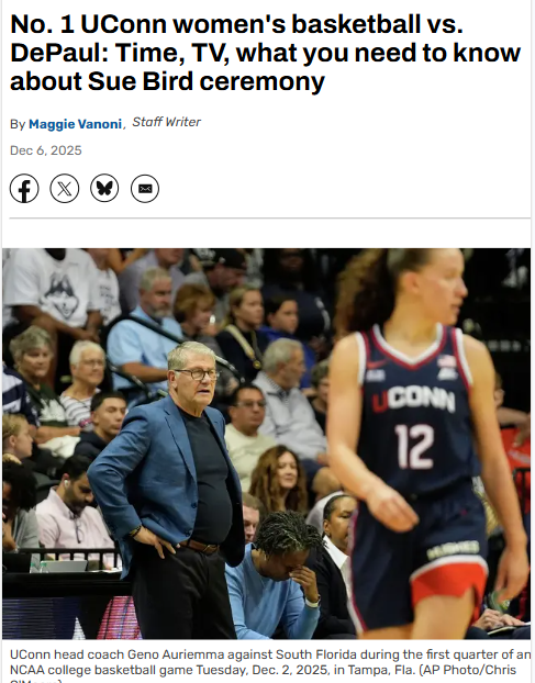 Oscar Gonzalez+FollowSue Bird’s jersey retirement: UConn celebrates a legendSue Bird’s No. 10 is heading to the Gampel Pavilion rafters, joining UConn icons Rebecca Lobo and Swin Cash. Bird’s impact goes way beyond stats—she helped shape UConn’s championship culture and inspired a generation of players. This Sunday, before the Huskies take on DePaul, fans can tune in to the ceremony on UConn’s social media. With Bird’s Hall of Fame induction and a record-breaking career, it’s a huge moment for the program and women’s basketball. How do you think Bird’s legacy has changed the game for UConn and beyond? #Sports #Basketball #UConn00Share