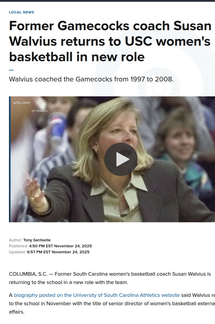 Brian Gaines+FollowSusan Walvius brings business savvy back to USCSusan Walvius is back at USC, but this time she’s not coaching on the court—she’s helping drive new opportunities for the women’s basketball program and its athletes. After launching a successful bedding company, Walvius is now focused on boosting revenue and maximizing NIL deals for Gamecock players. With her deep ties to Columbia and a track record of innovation, she’s set to play a big role in shaping the future of the team. What do you think her return means for USC women’s basketball and the local community? #Sports #Basketball #USC00Share
