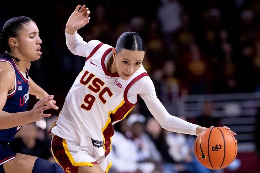 Patrick Gonzales+FollowUConn hands USC women a reality checkUConn’s visit to USC’s home court turned into a tough wake-up call for the Trojans, snapping their undefeated home streak with a 79-51 rout. The absence of JuJu Watkins was felt more than ever as the Huskies’ relentless defense and deep bench overwhelmed USC at every turn. Jazzy Davidson, who’s been a bright spot for USC, struggled under UConn’s pressure, and the team couldn’t find answers inside or out. With Big Ten play looming, this loss raises big questions: How will the Trojans regroup, and what needs to change for them to compete with the nation’s best? #Sports #Basketball #USC00Share