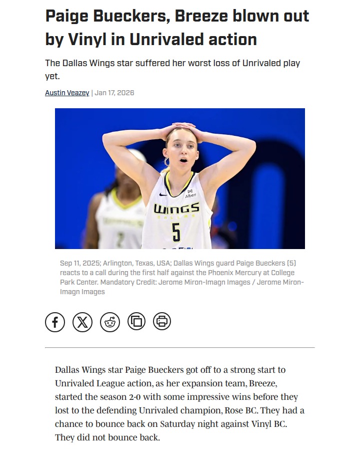 Patrick Gonzales+FollowVinyl BC Dominates: Bueckers Can't Save BreezeTough night for the Breeze as Paige “Buckets” Bueckers dropped 25, but even her all-around effort couldn’t stop Vinyl BC from running away with it. Vinyl’s Rhyne Howard was on fire, and the defending champs looked every bit the part, jumping out early and never letting up. Breeze’s defense just wasn’t there, and Bueckers’ supporting cast struggled to keep up. Do you think the Breeze can bounce back next game? #Sports #Basketball #UnrivaledLeague00Share