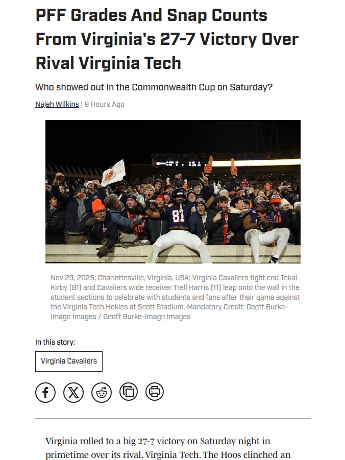 Amy Williams+FollowVirginia defense dominates in rivalry winVirginia’s defense absolutely shut down Virginia Tech, allowing just four completions and forcing two turnovers in a 27-7 win that sent the Hoos to their first ACC title game since 2019. Chandler Morris played smart, racking up 182 passing yards and a rushing TD, while J’Mari Taylor made ACC history with both a rushing and passing score. The Cavaliers had everything working on both sides of the ball, finally breaking through against their biggest rival. Which player’s performance stood out most to you? Do you think this momentum carries into the ACC Championship? #Sports #Football #VirginiaFootball00Share