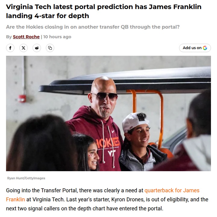 Jeffrey Armstrong+FollowVirginia Tech’s QB room gets a major shakeupVirginia Tech football fans, big news: the Hokies are set to land not just one, but possibly two promising quarterbacks from the transfer portal. After losing Kyron Drones and seeing backups depart, James Franklin and his staff—fresh from Penn State—have already secured Ethan Grunkemeyer and are now favored to add UNC’s Bryce Baker, a four-star talent. This could totally change the outlook for next season, giving the team much-needed depth and competition at QB. What do you think—will these moves be enough to put Tech back in the ACC mix? #Sports #Football #VirginiaTech00Share