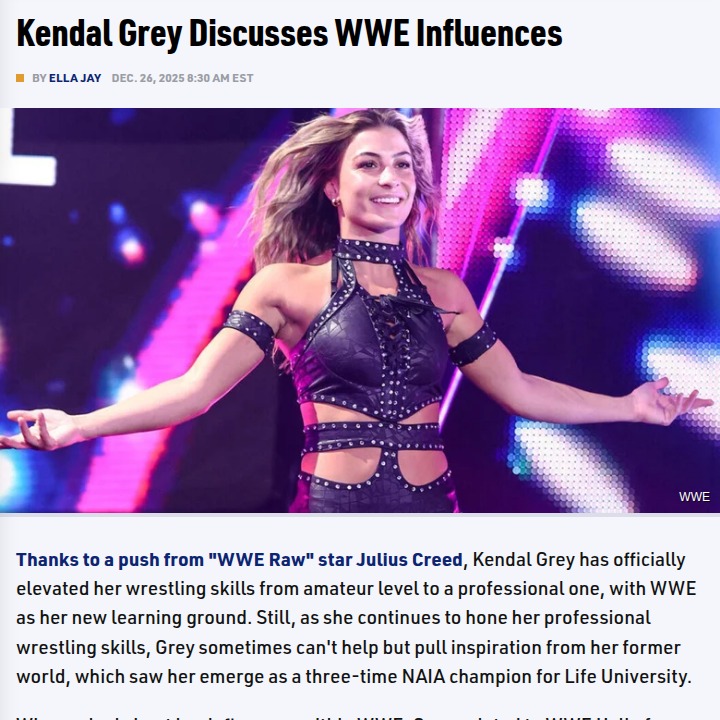 Diamond Horton+FollowKendal Grey Eyes Angle-Level WWE ImpactKendal Grey is making waves in WWE, drawing inspiration from legends like the Heartbreak Kid and the Olympic Hero. After dominating as a three-time NAIA champ, Grey credits Julius Creed for helping her level up. She’s openly chasing Kurt Angle’s path from mat to main event, hoping to become the female version of the gold medalist. Plus, she’s learning from Rey Mysterio’s high-flying style and Rhea Ripley’s powerhouse moves. Could Grey be the next big thing in the women’s division? #Sports #Wrestling #WWE10Share