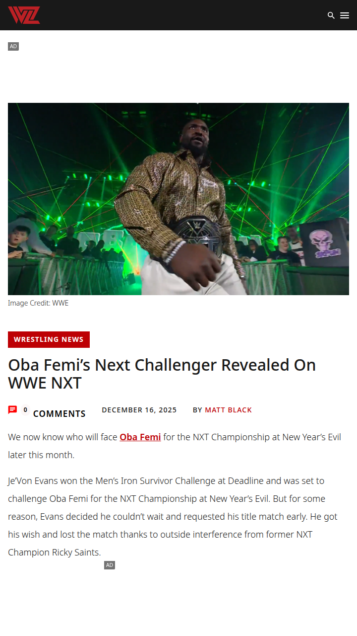 Kayla Mcconnell+FollowOba Femi Faces TNA’s Leon Slater Next!Huge shakeup on NXT! After Je’Von Evans cashed in his Iron Survivor win early (and got robbed by Ricky Saints’ interference), the TNA X-Division Champ Leon Slater seized his shot. Slater hit a Swanton 450 to pin Myles Borne and now he’s set to challenge Oba Femi for the NXT Championship at New Year’s Evil. Do you think Slater can dethrone the powerhouse, or will Oba’s reign continue? Let’s hear your predictions! #Sports #Wrestling #WWENXT00Share