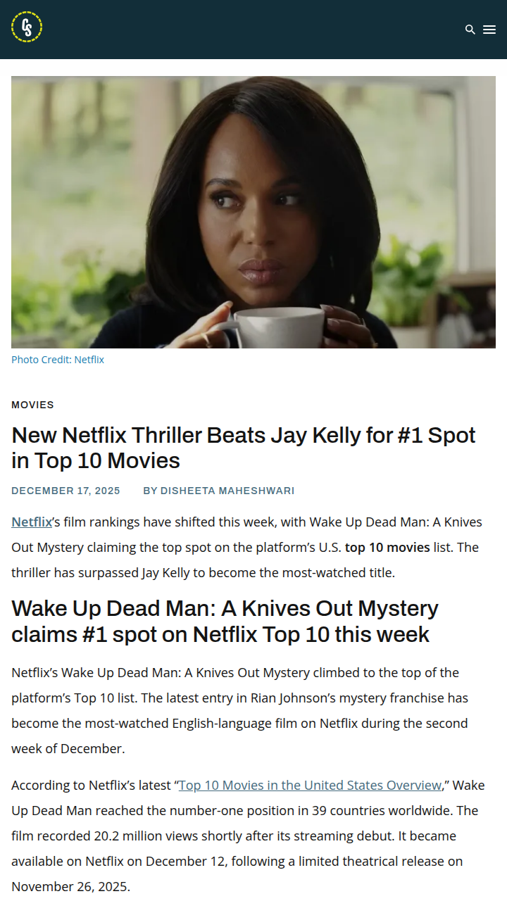 vanessadaniels+FollowWake Up Dead Man Overtakes Jay Kelly! 🔥Wake Up Dead Man: A Knives Out Mystery just dethroned Jay Kelly for the #1 spot on Netflix’s Top 10! Fans are buzzing about how this twisty whodunit managed to beat out Jay Kelly’s run, especially with Daniel Craig back as Benoit Blanc. Some say the star-studded cast and shocking church murder plot sealed the deal. Is this the best Knives Out yet, or is the hype overrated? #Entertainment #Movies #WakeUpDeadMan00Share