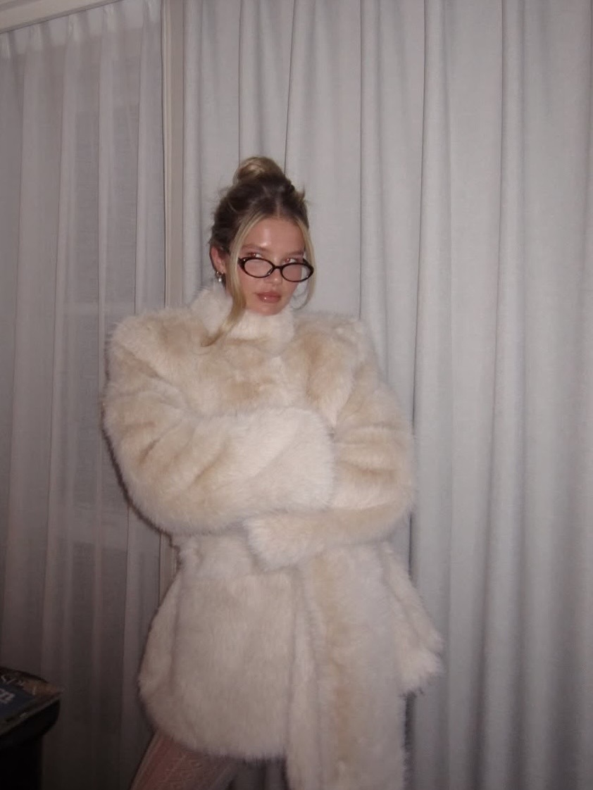 lstevens+FollowEllie Thumann’s Winter Fur Look Is EverythingEllie Thumann just made fur jackets the must-have winter trend! She rocked an oversized cream fur jacket (almost as a mini dress), paired with lace tights and matching knee-high boots. The cozy-chic vibe is next level, and those black round glasses? Chef’s kiss. If you’re looking for winter style inspo, this is it. Are you team faux fur or real deal? #Beauty #EllieThumann #WinterFashion00Share