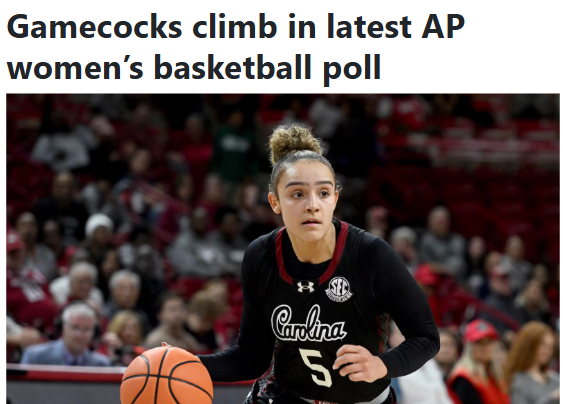 AmberAbyss+FollowGamecocks surge to No. 2—Columbia showdown ahead!South Carolina’s women’s basketball team just jumped to No. 2 in the AP poll, and the buzz around Columbia is electric. After dominant wins over Arkansas and Georgia, the Gamecocks leapfrogged Texas, who slipped after a tough loss to LSU. Now, all eyes are on Thursday’s top-five clash right here at Colonial Life Arena—Gamecocks vs. Longhorns, with tipoff at 7 p.m. on ESPN2. This matchup could shake up the national rankings even more. Who’s heading to the game, and what are your predictions for this high-stakes faceoff? #Sports #Gamecocks #WomensBasketball00Share