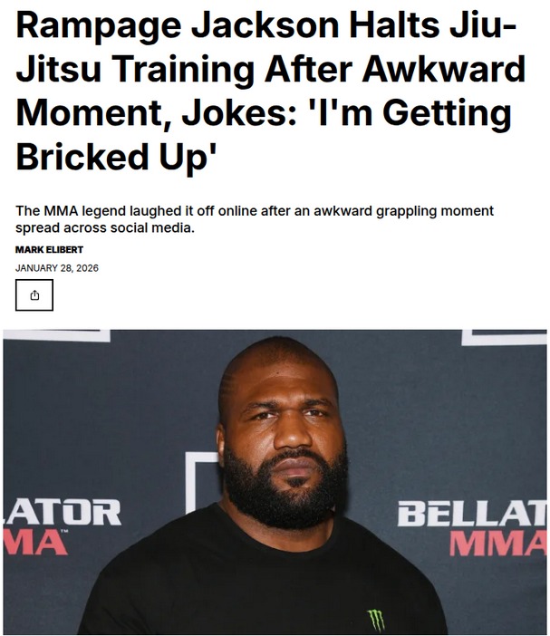Betty Whitaker+FollowRampage Jackson's Viral Jiu-Jitsu BreakClassic Rampage! The MMA legend had fans cracking up after an awkward jiu-jitsu moment went viral. While rolling with a female partner, Rampage called for a timeout, joking, “I’m getting bricked up,” and the whole gym lost it. True to form, the former champ leaned into the humor online, showing why he’s still a fan favorite. Just another wild chapter in Rampage’s highlight reel of viral moments! #Sports #Wrestling #RampageJackson10Share