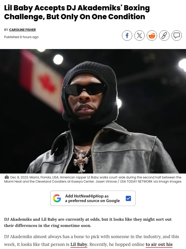 Betty Whitaker+FollowLil Baby vs Ak: Rap Beef Goes to the RingWho had Lil Baby and DJ Akademiks squaring up in a boxing match on their 2026 bingo card? The "In a Minute" hitmaker has reportedly agreed to step into the ring with Ak, thanks to Adin Ross playing matchmaker. This feud got real after Ak claimed Baby’s crew slapped him in Miami, leading to some wild online callouts. Now, it looks like this rap rivalry might actually get settled with gloves on. Would you tune in for this one? #Sports #Wrestling #LilBaby00Share